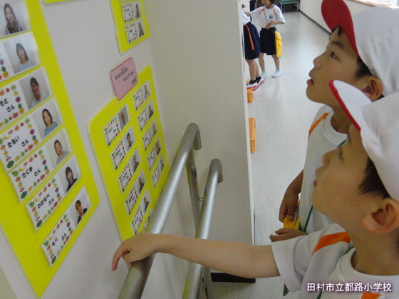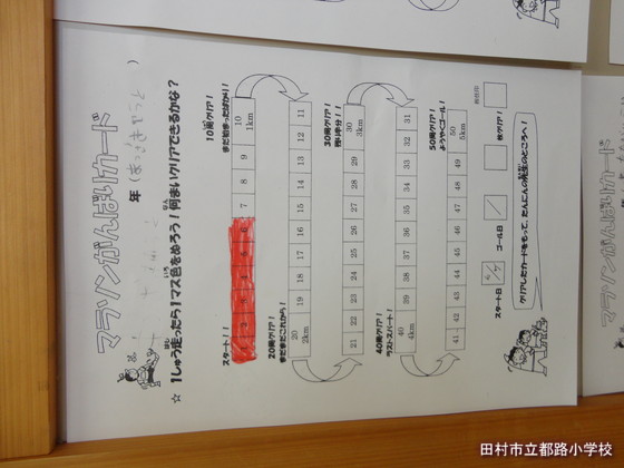 今日は初めて「がんばりカード」が使える日。みんな、はりきって校庭を走りました。その後、それと同じくらいはりきって「がんばりカード」に色を塗っていました。教室にみんなの「がんばりカード」を掲示しました。