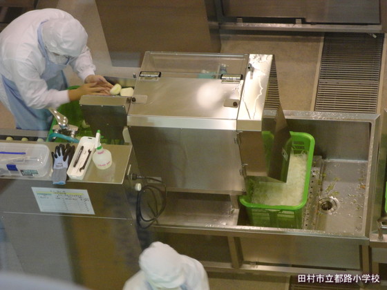 まずは、野菜を洗ったり、切ったりするところの見学です。
