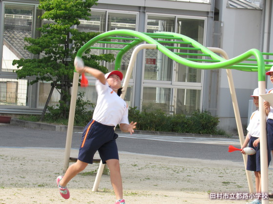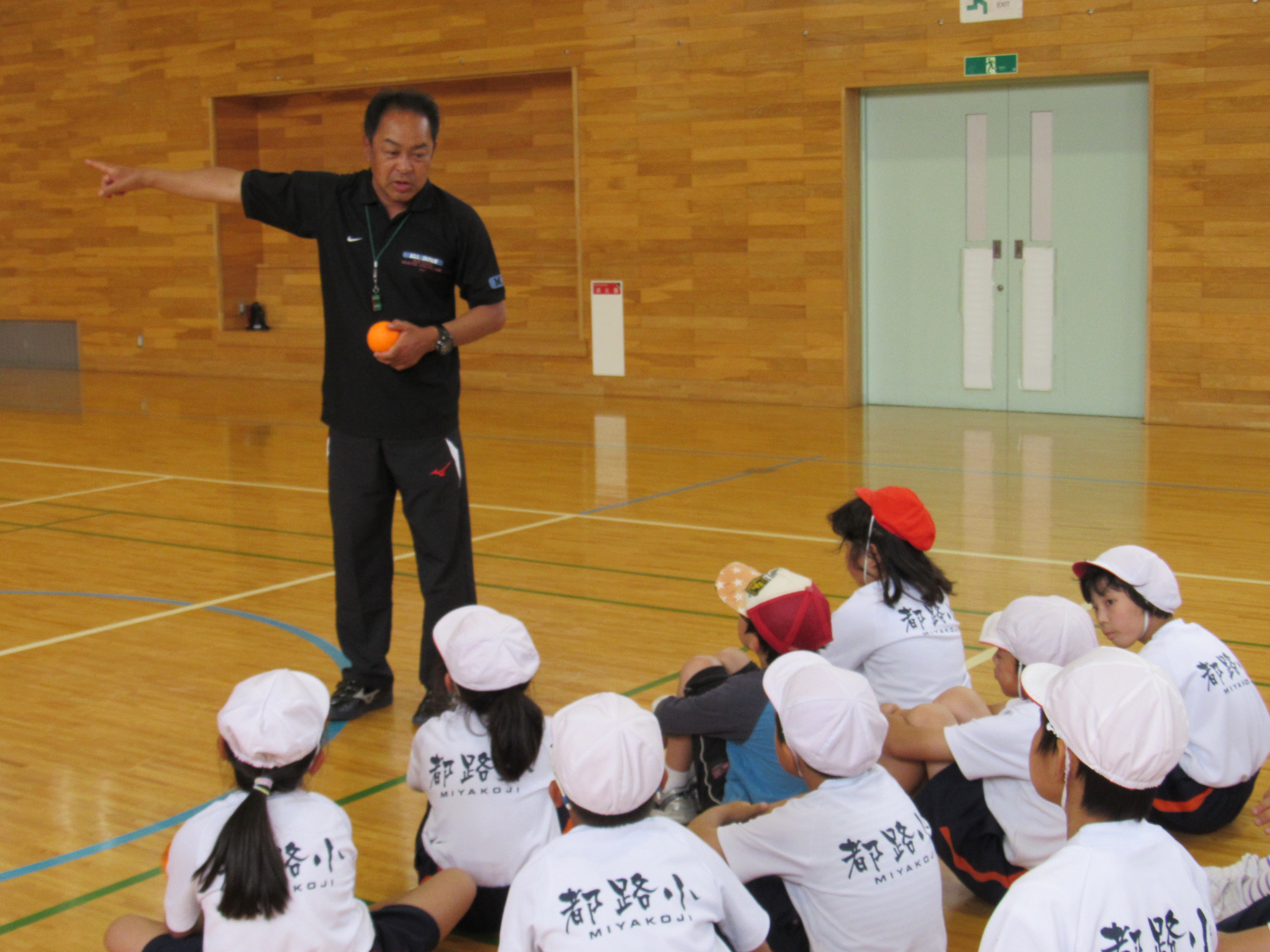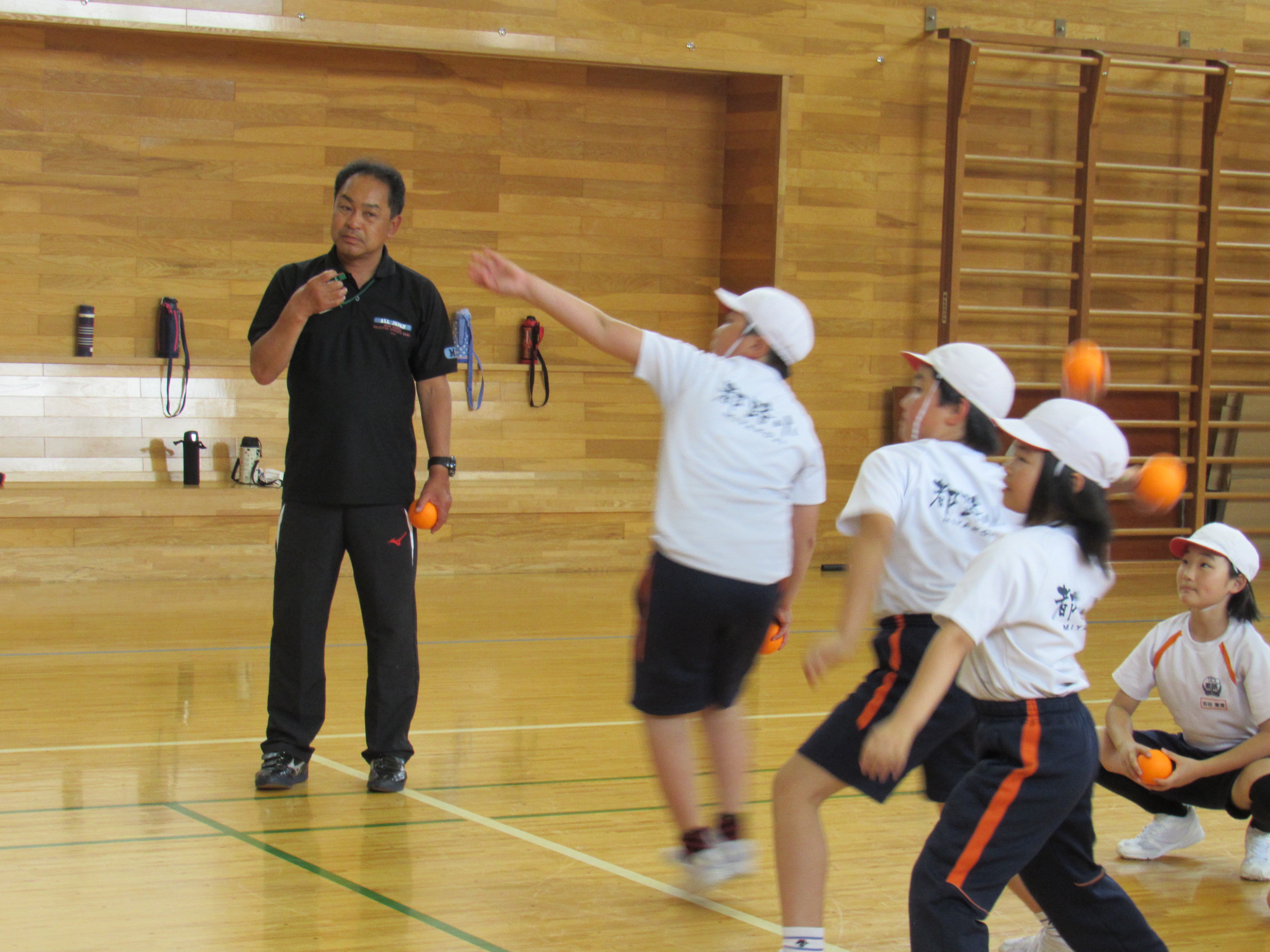 5校時目は、3・4年生の体育でボールの投げ方についてご指導いただきました。
