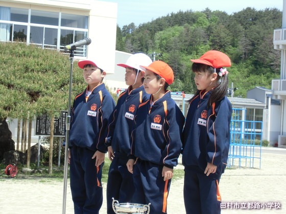 開会の言葉は1年生の4名です。大きな声で上手に話すことができました。