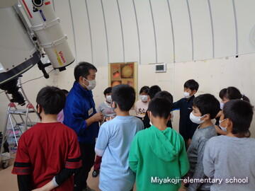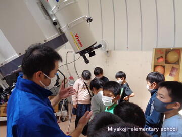 「パソコンで太陽をセットすると、動きを追って望遠鏡が移動するんだよ。」