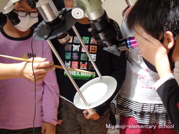 「望遠鏡で太陽光を集めると、木材もすぐ焦げるんだね。」「太陽が黄色く見えるよ。」