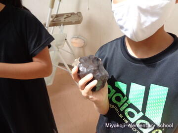 「こりゃ重い隕石だ。鉄が入っているんだって。」