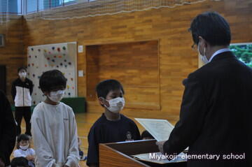 毎週木曜日は、すずらん集会があります。今日は、始めに田村地区小学校陸上大会と夏休み理科作品展の表彰状伝達がありました。