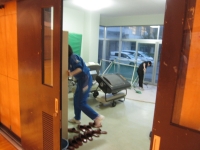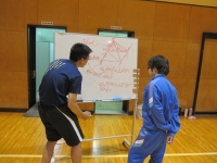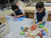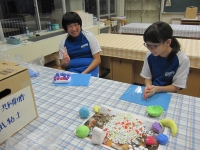 卓球部はいつもどおり体育館での練習、野球部も体育館での練習、ハレーボール部は体育館をきれいにする奉仕活動、文芸部は美術室での立体作品づくりです。そして、3年生は学習室での勉強。3年生の中には体育館にやってきて、数学の問題を先生に教えてもらう生徒や英語を教えてもらう生徒がいました。みんなそれぞれの目標に向かってがんばっています。