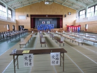 都路町敬老会が9月18日(日)に都路中学校体育館で開催されます。都路行政局の方々が来校され、体育館で準備を行いました。会場がとてもきれいにできあがりました。