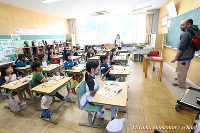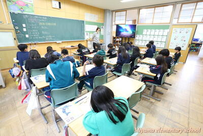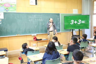 3学年は、外国語活動の学習です。ALTの先生を中心に、日常の言葉の、正しい発音について学習しています。