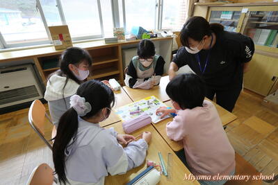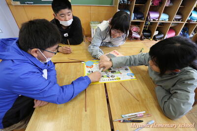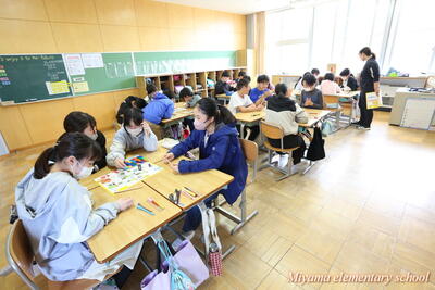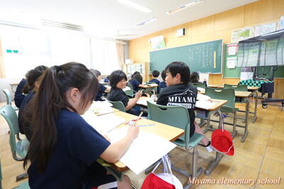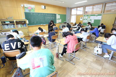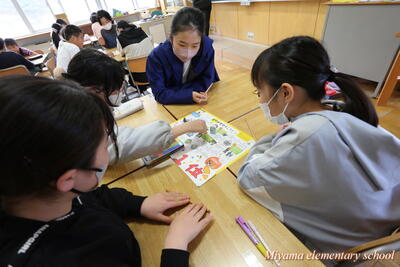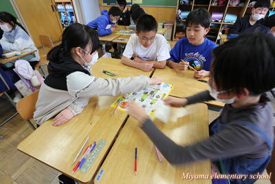 今日は6学年、総合的な学習の時間の様子です。学習テーマ「田村の歴史を探ろう」を基に、田村市からいただいた教材を活用しながら学習しています。これまで田村市で生まれ育った子どもたちにとっても、初めて知る内容もあり、楽しみながら取り組んでいます。