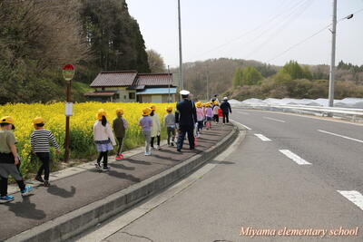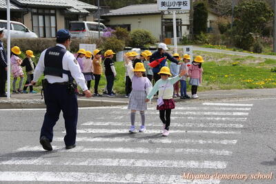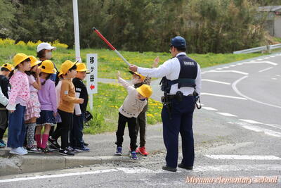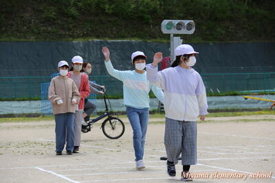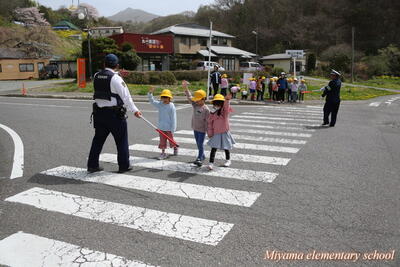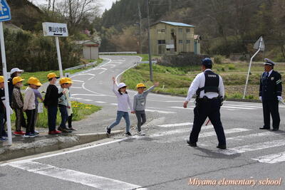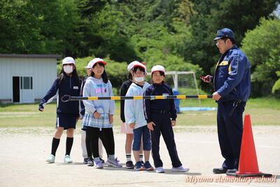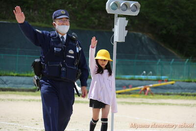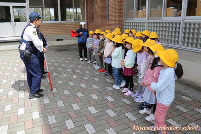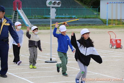 本日、雨で延期になっていた、1学年の交通教室が行われました。交通指導員のご指導の中、実際の歩道を歩いたり横断歩道を渡ったりして学習しました。交通ルールを守り、安全に行動することについて学ぶことができました。