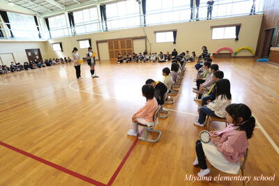 さて、本日4月22日(月)一年生を迎える会がありました。入学式から二週間が経ちましたが、一年生もみんな元気に学校生活を送っています。今日は、一年生の入学を、みんなで改めてお祝いしました。ゲームや〇×クイズも企画され、とても楽しい時間を過ごすことができました。