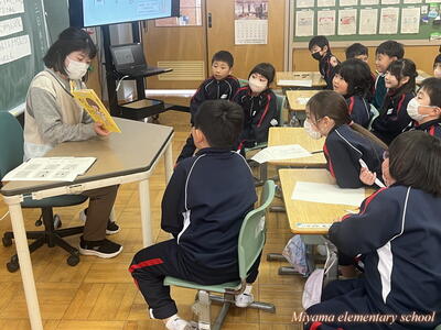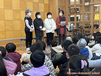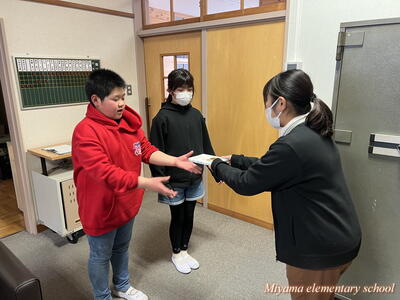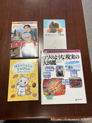 10月に行った本の紹介合戦「ビブリオバトル」に参加した子どもたちは、そのご褒美に図書室に入れる本の選択権をいただきました。今日、選んだ本が届き、受取式が行われました。本好きの子どもたちが、また楽しそうな本を選んでくれました。今年度の貸し出しは終了しましたので、4月まで楽しみに待っていてください。