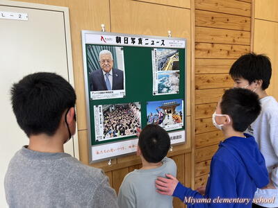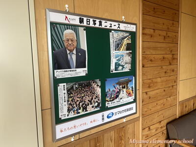 2階みやまっ子ルームの廊下に、日本国内や世界の出来事を、写真と短い文章で紹介するコーナーができました。地域の方からの寄贈で、今後定期的に写真ニュースが届きます。インパクトのある写真で、世の中の動きに関心をもつことができます。ありがとうございました。