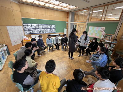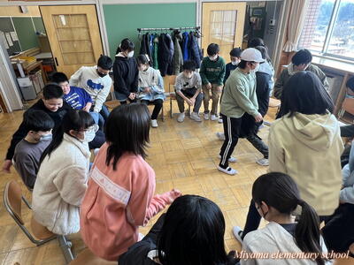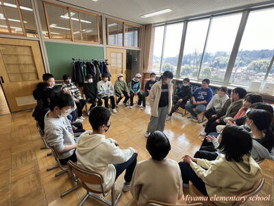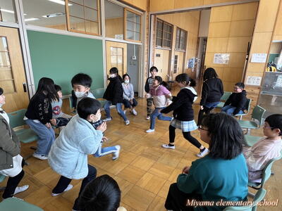 3年生はフルーツバスケット、4年生はいすとりゲームで楽しみました。5年生と6年生もフルーツバスケット。体育館は卒業式場となっていますし、校庭はぬかるんで使えません。教室やオープンスペースで楽しめるものを考えたら、同じような活動になりました。でも楽しく活動できました。思い出の一つになったかな。
