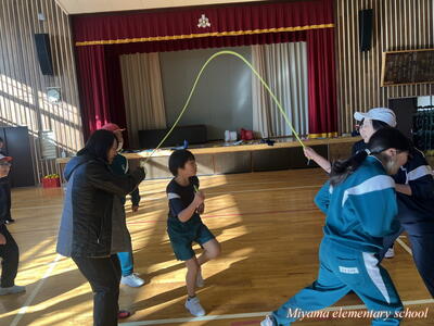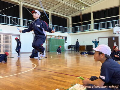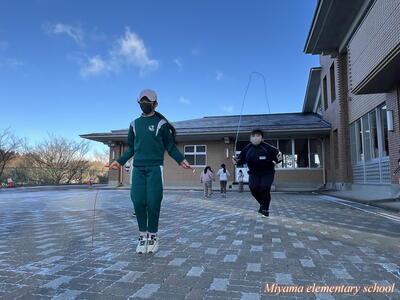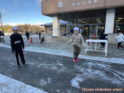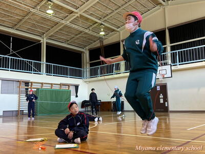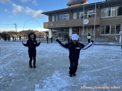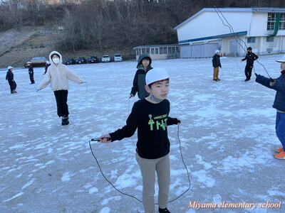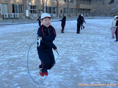 25日の朝は、氷点下の気温でした。それでも、朝なわとびの活動に張り切って校庭に飛び出していくみやまっ子です。高度な技を繰り出す上学年は縄の回転スピードも大したものです。それだけに、ミスをすると「ピシッ」と体にあたる縄が、まるで氷のムチのようです。縄跳び記録会まであと1週間。個人の記録も伸びてきました。