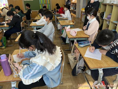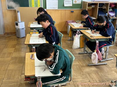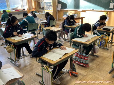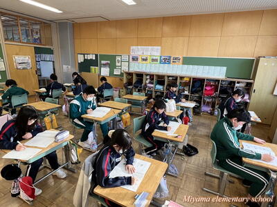5年生は、田村市共通テストにチャレンジしました。通常の単元ごとのテストと違って、これまで学習したことを総合的に使って解決する問題です。三角形の面積、割合、分数の計算、比例など、様々な分野から出題されました。テストは、振り返りが大切です。できなかったところがわかって、それを身に付けていくことができれば、テストの目的が達成です。復習を頑張りましょう。