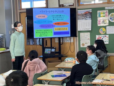 4年生は「からだと心の変化」について学びました。体の変化と同時に、心も成長していく思春期。「宿題をやりたくなくても、やると自分のためになるんだ」と考えられるようになるのも心の成長とのこと。様々な悩みは高校生の頃まで続くので、信頼できる大人や友達に相談して解決していくことが大切だそうです。「言葉の暴力も含めて暴力では、何も解決できません」という言葉が印象的でした。