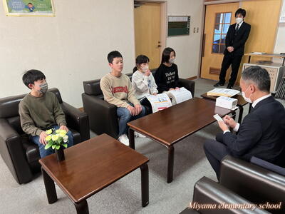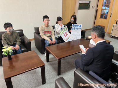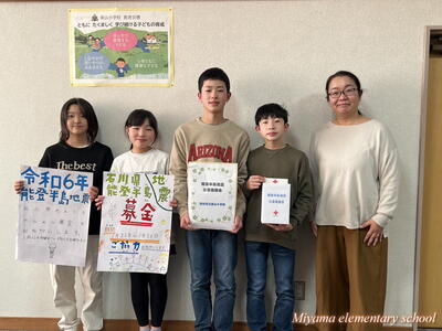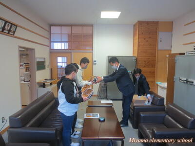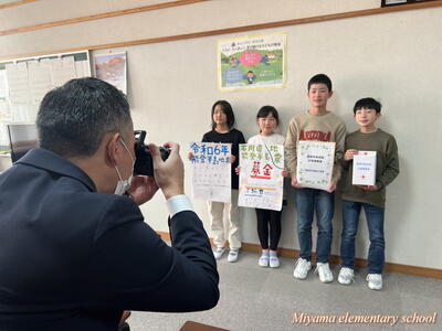 先週、代表委員会とボランティア委員会が、全校生に呼びかけて集めた能登半島地震の災害義援金は、おかげ様でたくさんの浄財が集まりました。ご協力に心から感謝いたします。今日、被災地に送っていただくよう新聞社の田村支局の方にお渡ししました。それぞれの委員会の代表は、新聞社の方の取材を受けました。「少しだけど被災した人の食料や被災地の建物の修繕に使ってもらえたら」と気持ちを伝えました。この思いは、美山っ子みんなの思いです。きっと被災地に届くと思います。