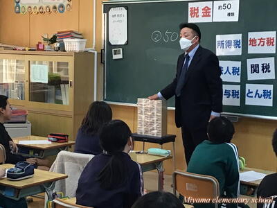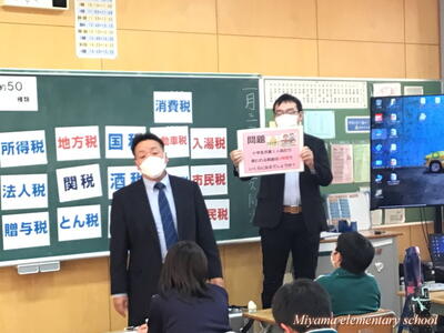 6年生は、郡山法人会(田村市内の企業の経営者)の皆様を講師にお招きして租税教室を実施しました。「税金って何?」「税金がないとどうなる?」などについてわかりやすく、楽しく教えていただきました。