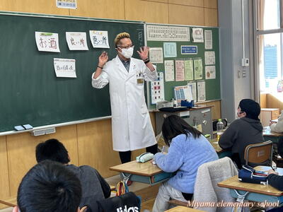 6年生は、学校薬剤師の先生をお招きして薬物の乱用防止について学びました。薬物といっても、子どもたちが身近に接する可能性のあるお酒とたばこ(ゲートウェイドラッグという)について学びました。お酒は適切に摂取すれば良い面もあること、たばこの吸い過ぎは健康被害につながることを学びました。最近は、大麻などの違法薬物や薬の過剰摂取(オーバードーズ)なども、低年齢化していることが問題となっています。違法薬物は「ダメ。ゼッタイ。」薬は決められた量を摂取することを、心にとどめておいてほしいと思います。
