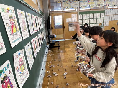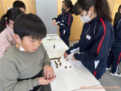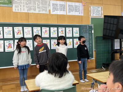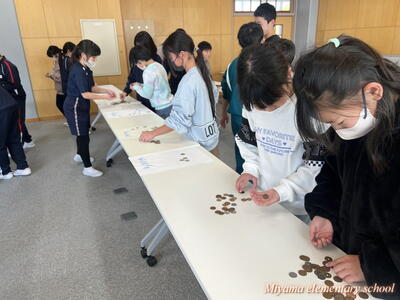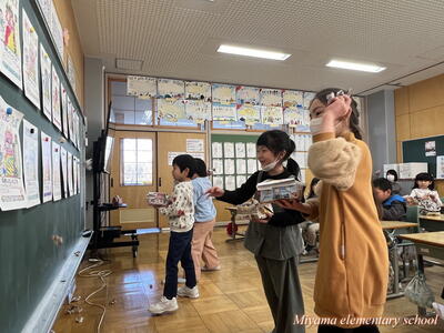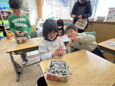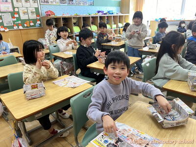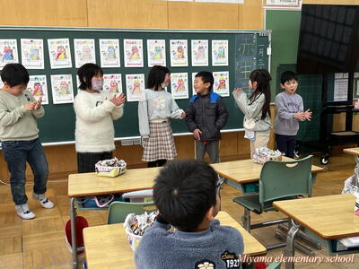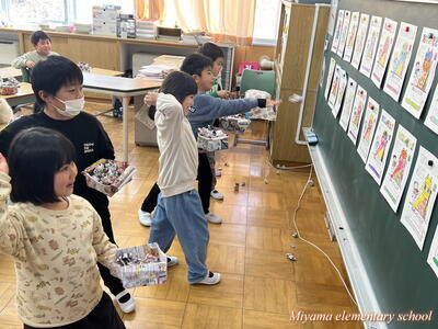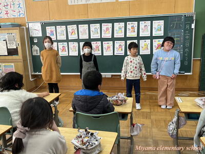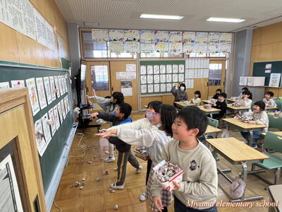 もうすぐ節分です。1年生は、少し早い豆まきをしました。鬼に見立てたのは、もちろん自分の中にいる鬼です。「夜ふかしオニ」「おこりんぼオニ」「ゲームオニ」など、自分の退治したい鬼について、みんなに宣言をしました。その後、自分で描いた鬼をめがけて豆まき。思いっきりぶつけるその姿に、本気を感じます。おうちでも、ぜひ豆まきをしてみてくださいね。