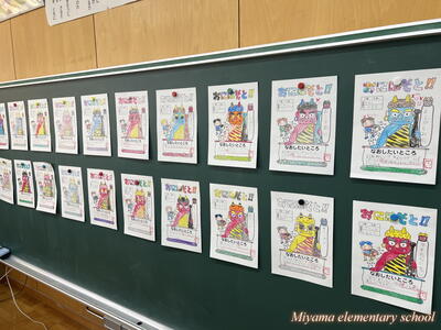 2024年1月31日 18時18分もうすぐ節分です。1年生は、少し早い豆まきをしました。鬼に見立てたのは、もちろん自分の中にいる鬼です。「夜ふかしオニ」「おこりんぼオニ」「ゲームオニ」など、自分の退治したい鬼について、みんなに宣言をしました。その後、自分で描いた鬼をめがけて豆まき。思いっきりぶつけるその姿に、本気を感じます。おうちでも、ぜひ豆まきをしてみてくださいね。