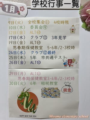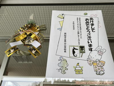 旧年中は、保護者の皆様、地域の皆様に大変お世話になりました。子どもたちの学習を支え、見守っていただいたことに心より感謝いたします。統合1年目の締めくくりの時期となります。子どもたちが、自信をもって進級・卒業を迎えられるよう職員一同力を尽くしていく所存です。本年も皆様のご協力をどうぞよろしくお願いいたします。