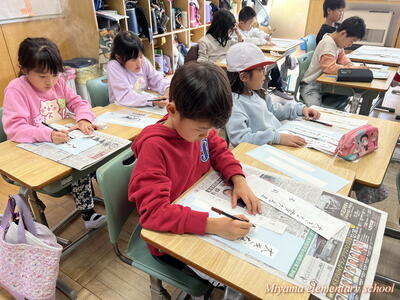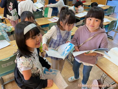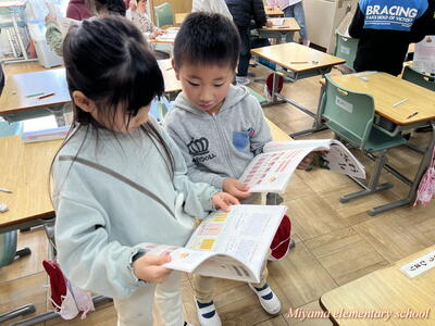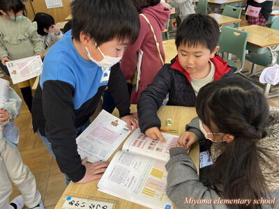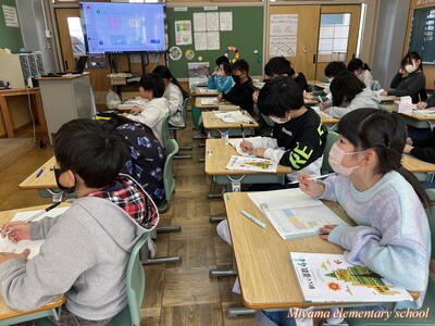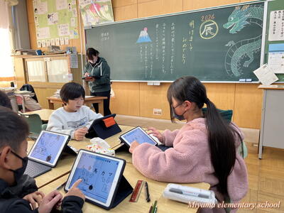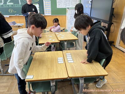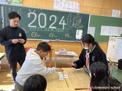 3年生の教室では、冬休みの作品を互いに鑑賞したり、お正月らしくカルタ(百人一首)に挑戦したりしていました。