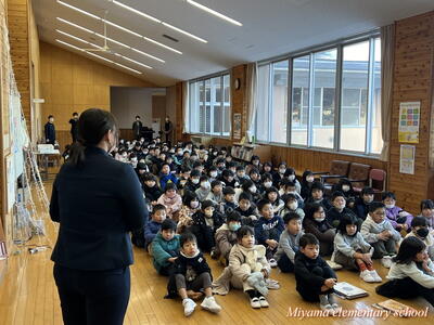 17日間の冬休みが終わり、今日から後期後半がスタートしました。冬休みの間、大きな事故やけがなく過ごせたこと、またどの子も楽しい思い出をもって登校できたこと、大変ありがたく思います。1月から3月は、次の学年へ進級・進学するための準備の期間です。これまでの自分をふり返り、さらにプラスワンの力を蓄えて、進級・進学してほしいと思います。生徒指導の先生と保健室の先生から、これからの生活で気をつけてほしいことのお話がありました。
