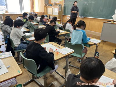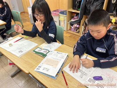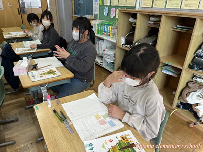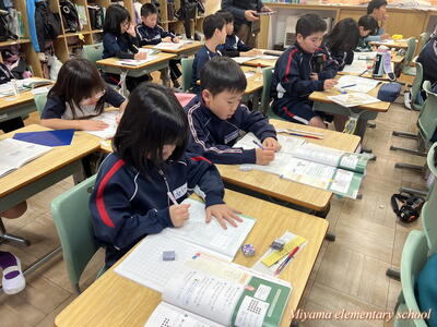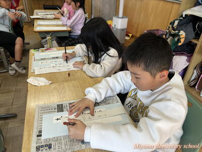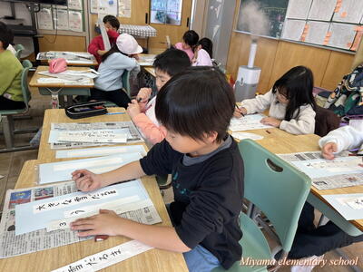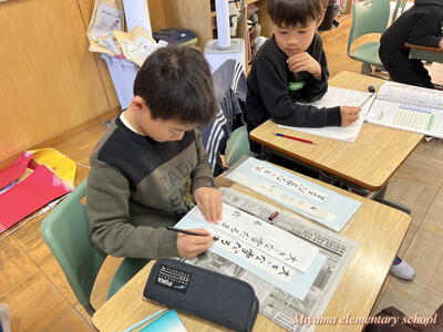 2年生は書き初めの仕上げをしていました。文字のポイントを確認して、清書用紙に仕上げます。「お~うまくいった」「よくなったと思う」そんな声が聞こえました。自分の文字の成長を感じることはとても大事なことですね。