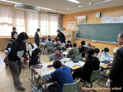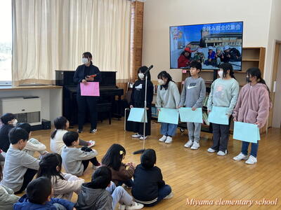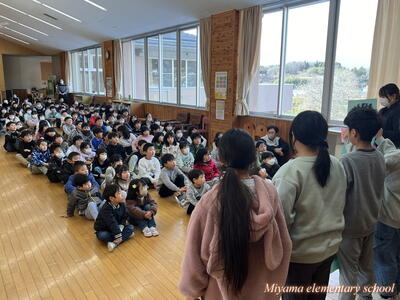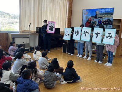 2023年12月22日 17時01分冬休み前の全校集会を実施しました。夏休みから冬休みまで「あっという間か」「長かったか」の2択では、「長かった」という子どもたち。それだけ様々な経験と成長をしたのだと思います。校長からは、冬休み中「命を守る」「あいさつ・返事・お手伝いをする」「小さなことをコツコツ続ける」冬休みにしてくださいと話をしました。生徒指導の先生からは冬休みに気をつけてほしいこと、養護の先生からは健康を守るために大切にしてほしいことのお話がありました。