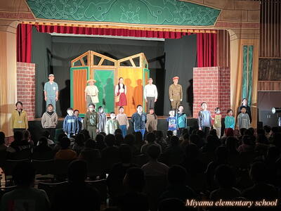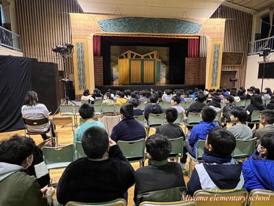 文化庁による「文化芸術による子供育成推進事業」を活用して、芸術鑑賞教室を開催しました。東京から「劇団トマト座」という劇団が来てくださいました。舞台装置や照明、音響設備などすべてを持ち込んでの本格的な演劇でした。太平洋戦争時の上野動物園で本当にあった「動物の処分」を題材にしていました。とても悲しいお話ですが、1年生から6年生までが真剣に劇に見入っていました。身近で本物の芸術に触れる、本当に貴重な体験でした。