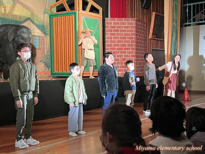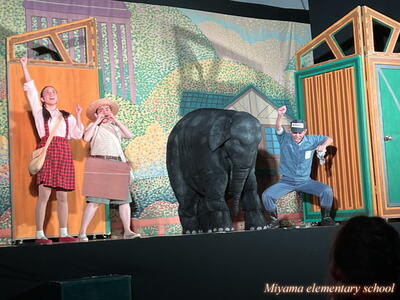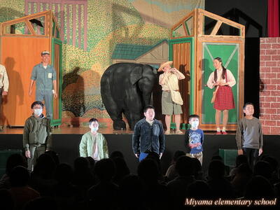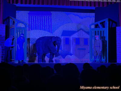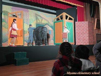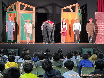 今日の芸術鑑賞教室「子象物語」には、3年生以上の代表児童が劇に参加しました。昨日も練習しましたし、今日本番前にも練習しました。自宅で台詞や歌を練習してきた子もいました。練習した成果がとてもよく出ていました。劇の雰囲気をとらえて楽しそうに、別の場面では悲しそうに演技できていました。拍手です!