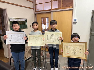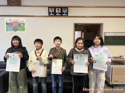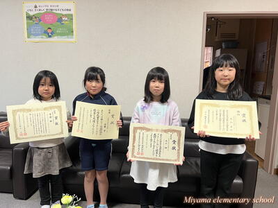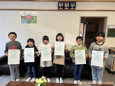 通常は全校集会の中で、コンクールの表彰等をしておりますが、たくさんの入賞者がいたことと、感染症を予防するため、校長室で表彰式を行い、各教室にオンライン配信をしました。スポーツ少年団頑張りや夏休みに頑張った作品、授業の中で取り組んだ作品などが、よい評価をいただいたことは、子どもたちの自信になります。おめでとうございます。