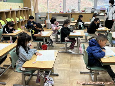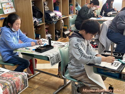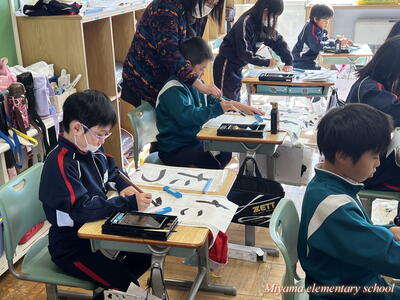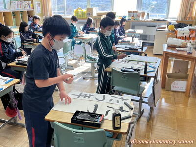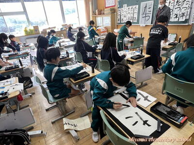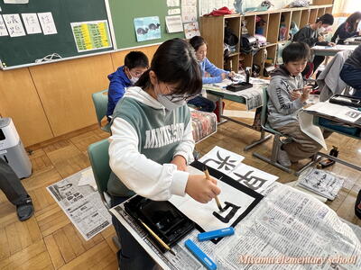 地域の先生にお世話になって、今日も書き初めの練習をしました。5年生は「早春の光」、3年生は「たつ年」と書きます。普段の半紙ではない、大きな紙に書きますので少し緊張します。でも、手本をよく見て伸び伸びと書けるといいですね。学校で練習した残りの紙を持ち帰りますので、ご家庭での練習と仕上げをどうぞよろしくお願いします。