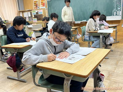 全学年が市の学力調査に挑戦しました。国語と算数の2教科において、学習したことが身についているか、活用できるようになっているかを試します。どの学年も真剣に取り組みました。今週お休みした人は、来週実施します。結果をもとにしっかりと復習したいと思います。