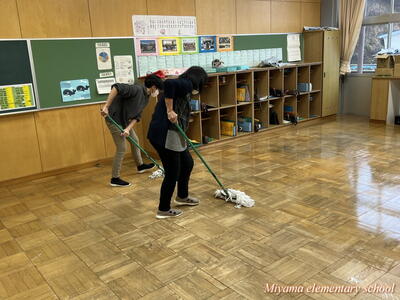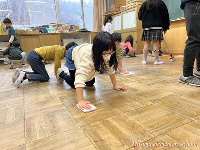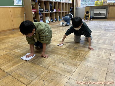 年の瀬には、使っているところをきれいにして新しい年を迎えたくなります。子どもたちは、4月から使ってきた教室に感謝をしながら、すみずみまできれいにしました。普段動かさない棚などを動かすと「こんなにほこりがたまっていた」と驚きます。ていねいに掃き掃除をして、雑巾がけをしました。放課後には先生方がワックスがけをしてくださいました。