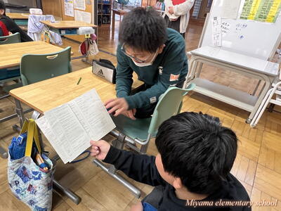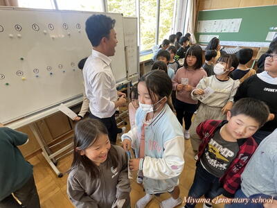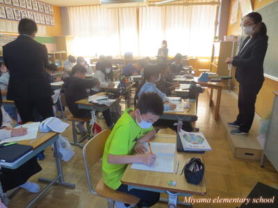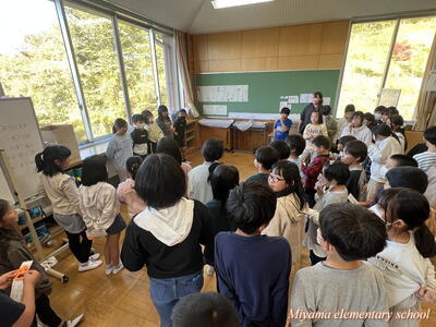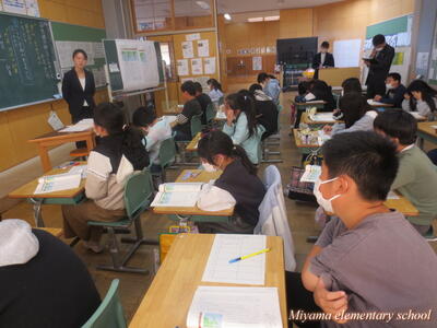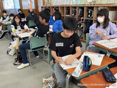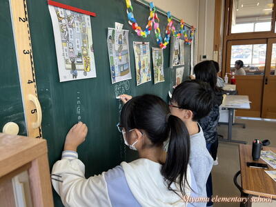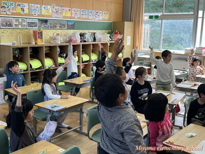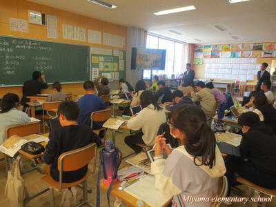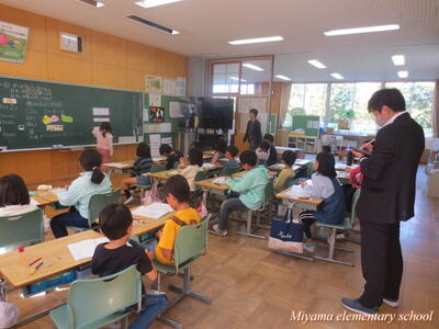今日は、美山小にたくさんのお客様がいらっしゃいました。子どもたちの学習の様子を参観していただき、楽しく学んでいるか、深く学んでいるか等を見ていただきました。2年生に「緊張した?」と聞くと、「いいえ、緊張しませんでした」「いつもどおりです」という返事。緊張したのは、職員だけだったようです。