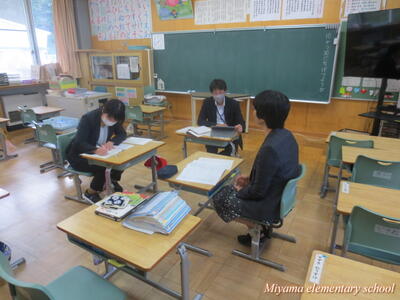 子どもたちが帰ったあとは、先生方の勉強の時間。今日の授業を振り返って、よりよい授業のためにどうすればよかったのかを話し合いました。