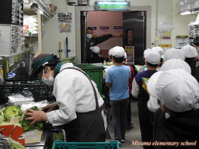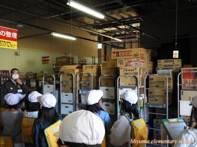 3年生は、スーパーマーケットでは消費者のためにどんな工夫をしているのかを調べるために見学に行きました。スーパーマーケットの裏側は、普段は決して見ることのできないところです。商品が搬入されてからお店に並ぶまでに、様々な工程を経ていること、その間に消費者のためにいろいろな工夫をしていることを実際に見ることができました。