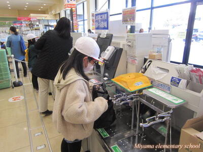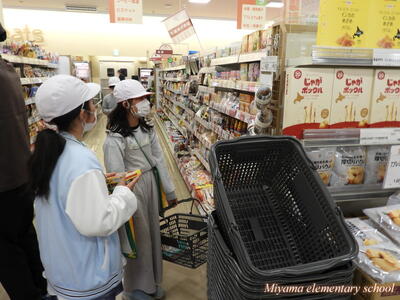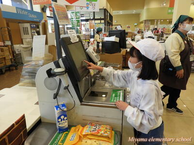 見学のあとは、買い物体験です。事前におうちの人と相談してきたものを、たくさんの商品の中から選びます。「家でいつも使っているのは?」「どれがお得かな?」考えながら買い物をします。とてもいい体験です。う~んと悩んで買ってきた物ですから、ぜひ褒めてあげてくださいね。