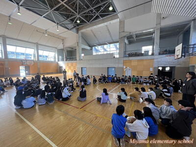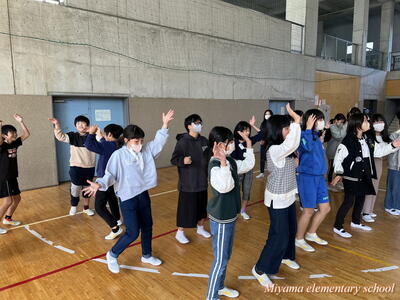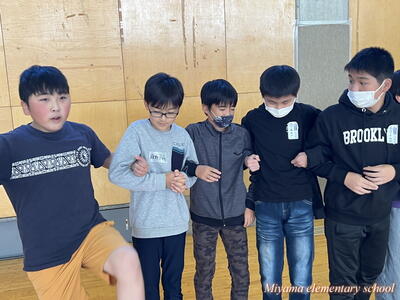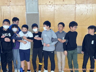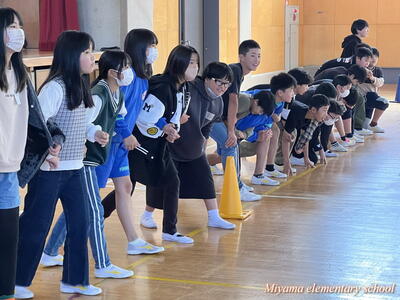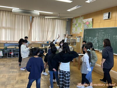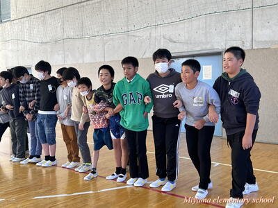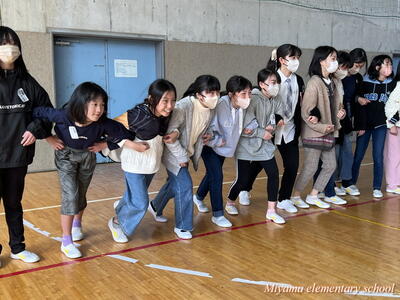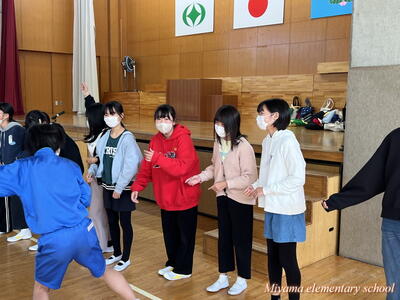4校時目は、学級活動でさらに交流を深めるための集会活動を、船引小の6年生が企画してくれました。「スーパーだるまさんが転んだ」や「じゃんけん列車」をして盛り上がりました。この頃には、初めの緊張はうそのように笑顔になっていました。「楽しい!もっと一緒にいたい」「交流をもう1回できないんですか」そんな声も聞こえました。