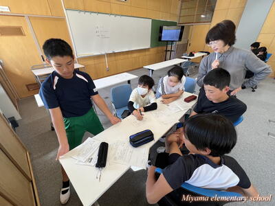 各学年は、さっそくフェスタに向けて、一致団結して動き出しました。5年生は、どんなセリフで伝えるのか、グループで検討中。内容についてはまだ秘密だそうです。