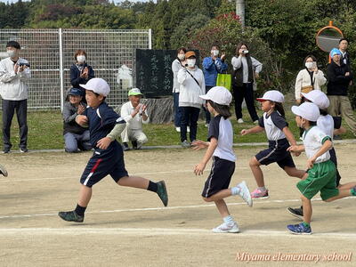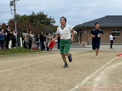 さすがは高学年。迫力のあるかっこいい走りでした。応援の声もステキでした。下の学年にいいお手本を見せることができたと思います。