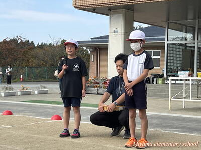 明日は持久走記録会です。今日の全校集会では、各学年の代表が明日への意気込みを発表しました。明日、どの子も、今までの自分より少しだけ頑張った自分になれればいいなと思います。頑張れ、みやまっ子!