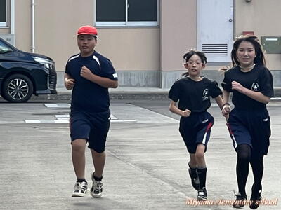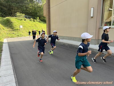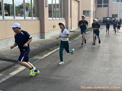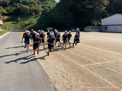 昨年の持久走記録会は、市陸上競技場を使用して4校合同で行いました。今年は、校内のコースを設定して実施する予定です。4年生と5・6年生がコースを試走しました。コースを確認することが目的ですので「ジョギングペース」で、とは言っても、いざ走りだすとセーブするのは難しい子どもたち。どんどんペースが上がっていきます。今日は1000mを走ってみました。本番まで、少しずつ練習を重ねていきます。