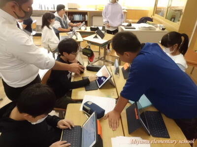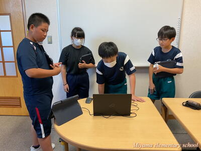 児童会活動発表会とは、各委員会が前期の反省をもとに「後期はこんな活動に取り組みます」と宣言する会です。前期の活動をふり返ると、学校のためによくできたこと、もう少し工夫したかったことが見えてきます。それを踏まえて、委員会として何ができるかを考えるよい機会です。発表の前に、6年生が中心となって発表原稿とスライドを作成しました。発表は、全員で集まると時間がかかるので、事前に録音して各学級ごとに視聴することとしました。「録音の方が緊張する」という子も。