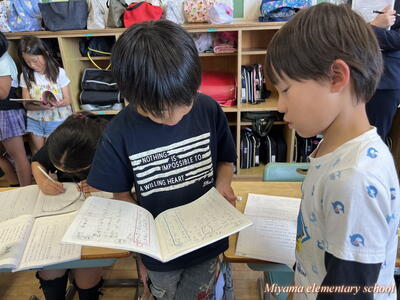 2年生は、生活科でまちたんけんに出かけました。今回は、3つのグループに分かれて、美山・瀬川・移の3つの地区を回りました。お小遣いも少しだけ使ってよかったので、子どもたちはもうワクワクです。それぞれに見たかった場所に出かけ、地域の皆様からお話を聞いたり、インタビューしたりして楽しく触れ合ってきました。自分たちの地域をますます大好きになって帰ってきたようです。