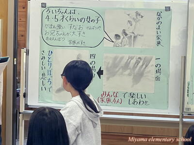 今日は先生方の研究会のため早い下校でした。各家庭での対応、ありがとうございました。3年生だけは、5校時目まで残って国語の学習を他校の先生方に見ていただきました。先日紹介した「ちいちゃんのかげおくり」の主人公「ちいちゃん」は幸せだったのか?を考えました。物語の最後、天国で家族に出会えたちいちゃん。3年生は、これまでの読みを総動員して、また自分の家族や命、戦争に対する思いを総動員して、じっくりと考えました。