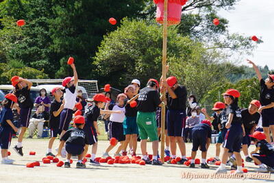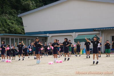 運動会で最も練習を重ねたのはダンスでした。AyaKa先生に教えていただいたダンスは3曲。それらをつなげて1つの表現にしました。1~3年生は、ダンスだけではなく、たくさんの隊形移動も覚えました。曲と曲の間だけではなく、曲の途中でも素早く移動します、なかなかハードな動きでした。4~6年生は少し大人っぽさのあるダンスでしたので、表現が難しい部分もありました。高学年の中には、ダンスに抵抗のある子もいたでしょう。でも、全員でかっこいいダンスを見せる!その一点でみんなで頑張りました。