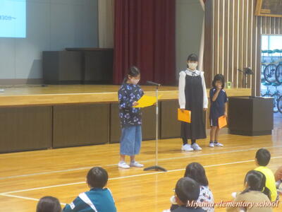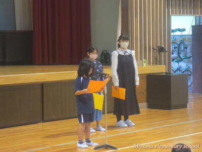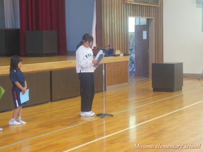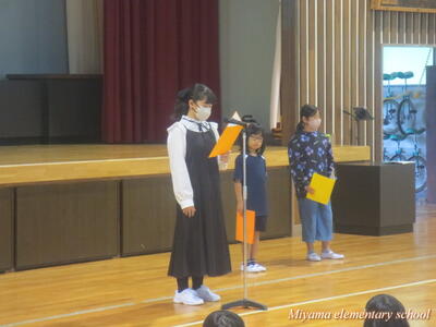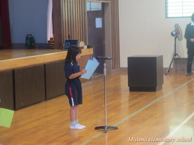 3日間の休みを挟んで、今日から後期がスタートしました。始業式では、校長からなりたい自分をイメージしてちょっと難しいことにもチャレンジしようと話をしました。また、生徒指導の先生からは、みんなが気持ちよく生活するために、美山小のルールについて確認するお話がありました。2・4・6年の代表は、後期に頑張りたいことを発表しました。勉強のこと、体力づくりのこと、友達のことなど、なりたい自分について、しっかりと発表できました。